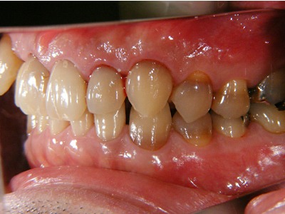 4番は抜歯してすでにありませんが2,3,5番にかけて連続性が確保でき、歯列が改善されました。審美的にも清掃面でも良好な環境となったと思われます。