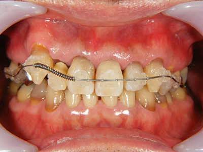 八重歯を中心とした叢生が顕著です。その周囲のみが既にクラウンとなっており、不適合が目立ちます。